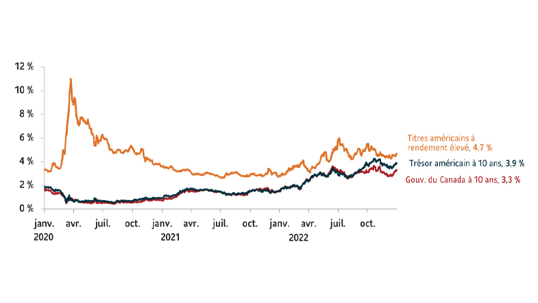 Graphique 2 : La courbe de rendements des obligations de 10 ans a terminé 2022 en hausse aux États-Unis et au Canada