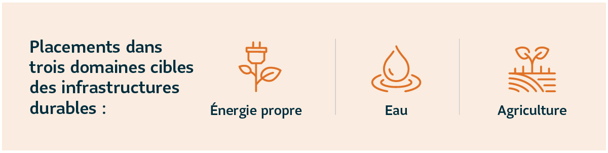 La convergence de ces facteurs peut être porteuse pour les investisseurs en quête d’une occasion de placement qui s’échelonnera sur plusieurs décennies et qui leur permettra de diversifier leurs placements dans de nouvelles possibilités au-delà des secteurs populaires surachetés comme les technologies et les services de communications. Le Mandat privé d’infrastructures durables KBI Sun Life pourrait répondre aux besoins actuels de ces investisseurs, à qui il offre les avantages suivants :