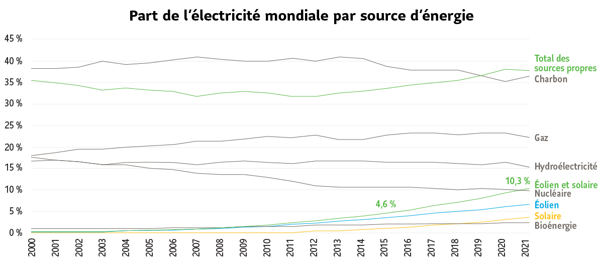 Pour la première fois, 10 % de l’électricité mondiale provient de l’éolien et du solaire